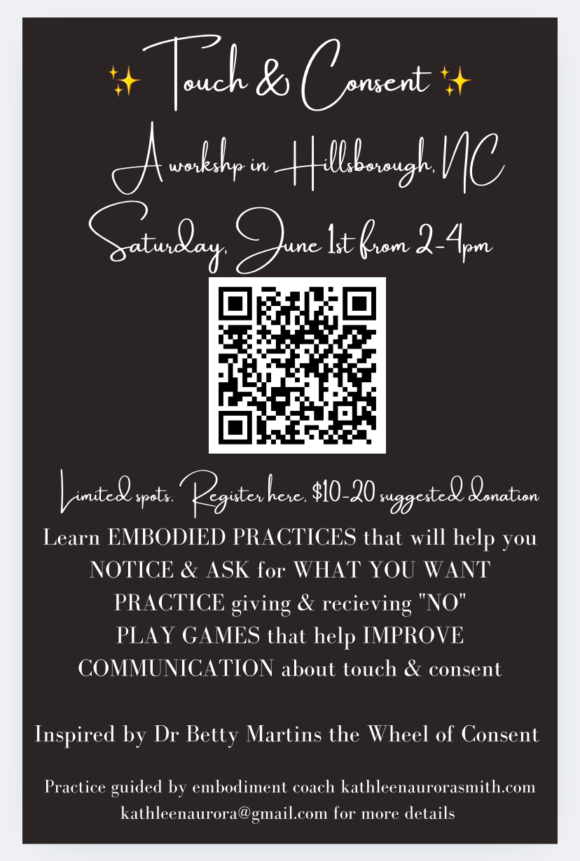 Come and play, dive in and explore, slow down and become present with what is in this intimate group journey into the foundational somatic practices of the Wheel of Consent ® developed by Dr. Betty Martin.